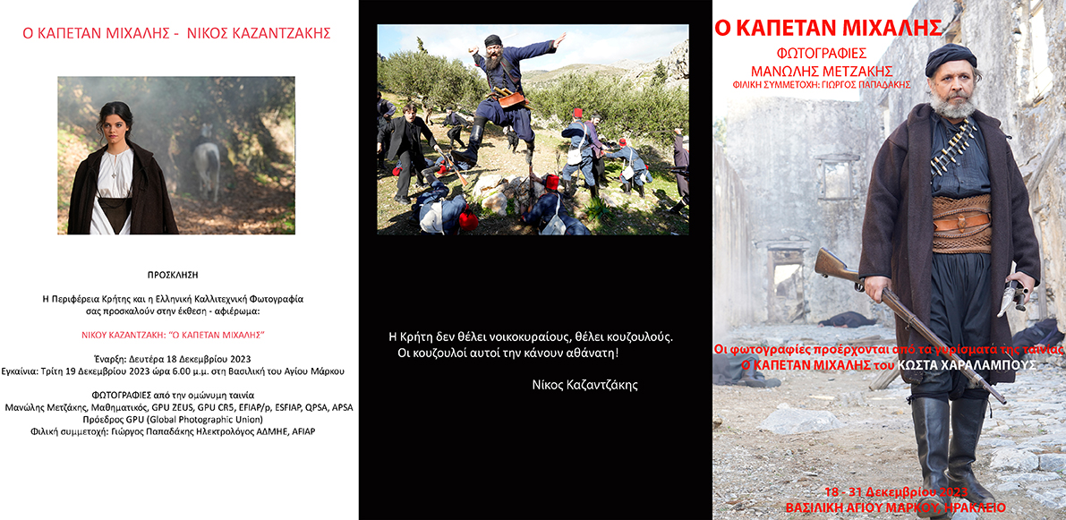 The Opening Ceremony of my photographic Exhibition with photos from the film “O Kapetan Michalis” of Nikos Kazantzakis! Director of the film is Kostas Haralabous! The exhibition will be open till 20 January 2024 at St. Petros Basilica in Heraklion, Greece.