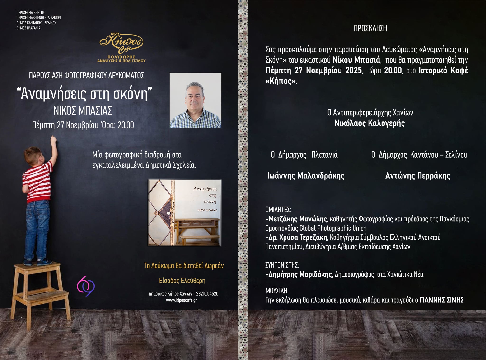 Thursday 27 November 2025 at 20:00 at Historical Cafe “Κήπος-Garden” in Chania, Greece.